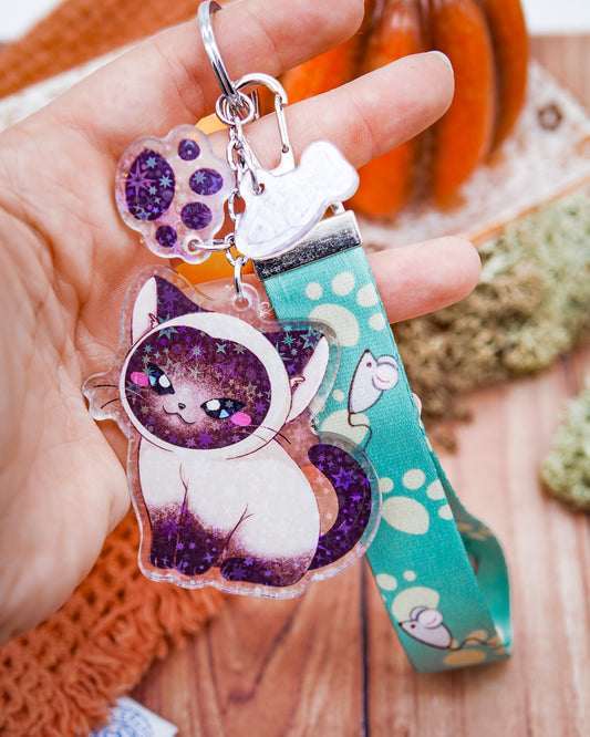 Acrylic Keychain Lanyard - "Siamese Cats"